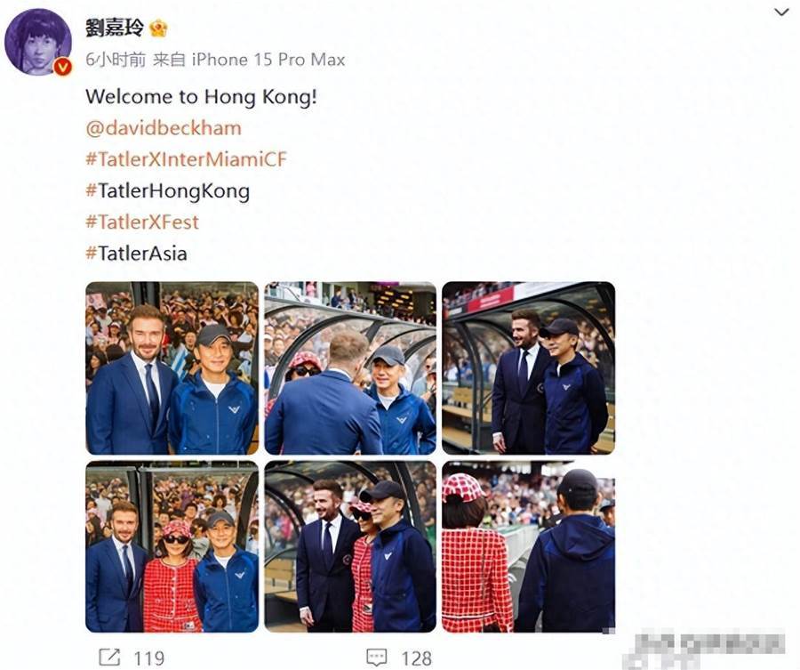 劉嘉玲在自己的個人社交賬號上曬出了梁朝偉跟貝克漢姆的合照,并配文表示道:「welcome to Hong Kong!」照片中可以看到貝克漢姆穿著修身的西裝,跟梁朝偉一起合照。與貝克漢姆的西裝革履相比,梁朝偉就顯得有些休閑,他穿著深藍色的運動外套搭配牛仔褲,戴著棒球帽,與貝克漢姆微笑合照。不過,梁朝偉還是很有氣場的,即使打扮休閑,但是依然很有氣質。