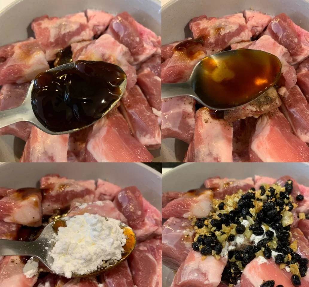 首先,我們需要選購一些骨頭比較小的小排骨,這樣在蒸煮過程中,骨頭的營養素可以更好的流入肉中。我們加入兩勺淀粉,抓均勻后再用清水泡洗幾遍,以清除血水,使排骨的顏色變白凈。