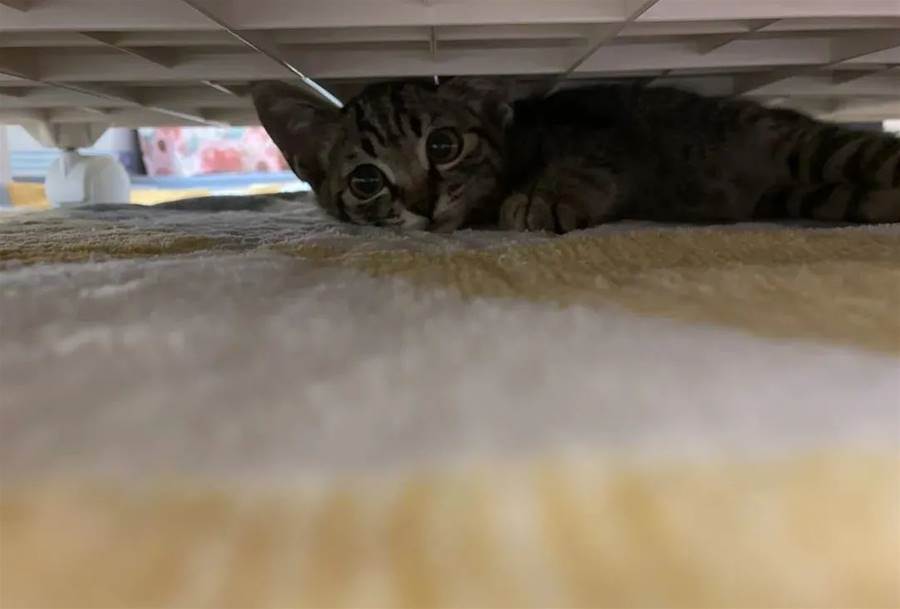 小貍花貓剛到妹紙家,立馬躲了起來,妹紙也不管它,準備好吃的喝的,耐心等待它降低警惕性...