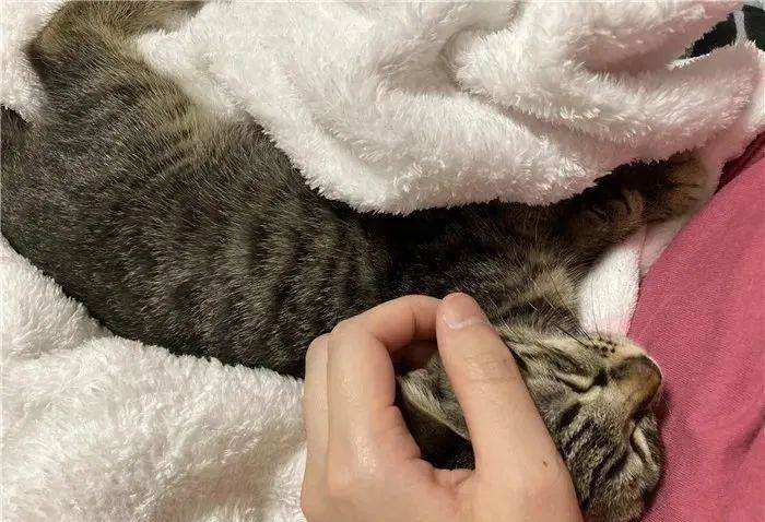 不過,只需兩天,小貍花貓就熟悉了環境,開始變得黏人,跳上床和妹紙一起睡覺覺...