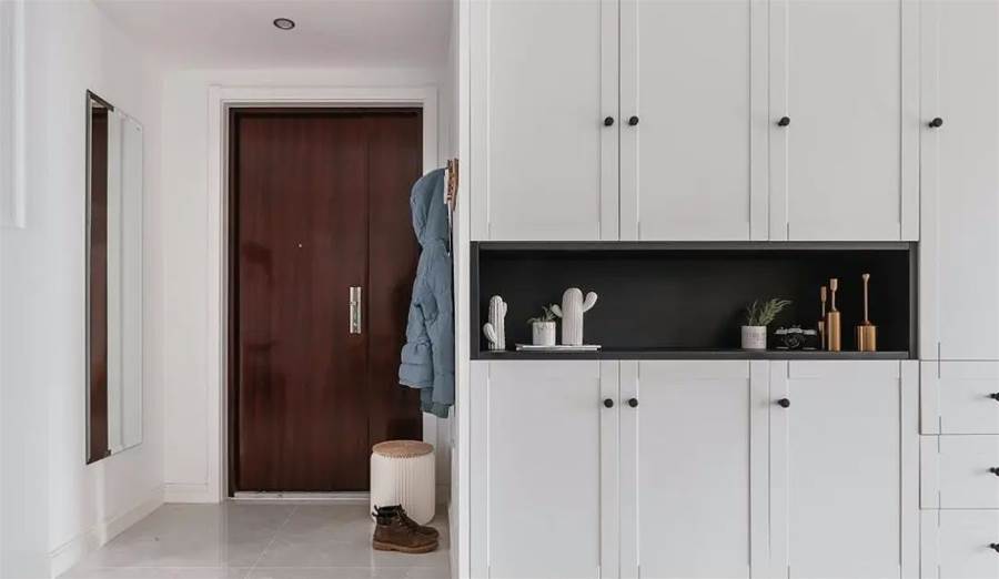 從一進玄關開始我們就能感受到屋內的整潔和簡單,或許用簡單兩字不是很恰當,應該用極簡兩字才會更合適一些。這也體現了「斷舍離」裝修風格的特點,剔除過多的設計,不做過多的裝飾,只講究簡約的美感和實用的功能。