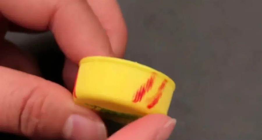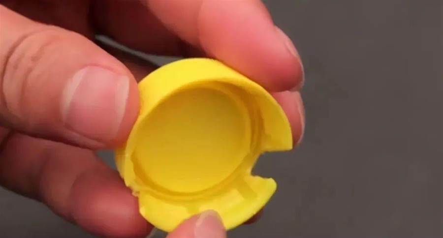 第一步,首先我們將塑料瓶上的瓶蓋取下來,隨便什麼塑料瓶都可以,先用記號筆在塑料瓶蓋的側面標注兩條斜桿,注意一定是45度左右的斜線才行。