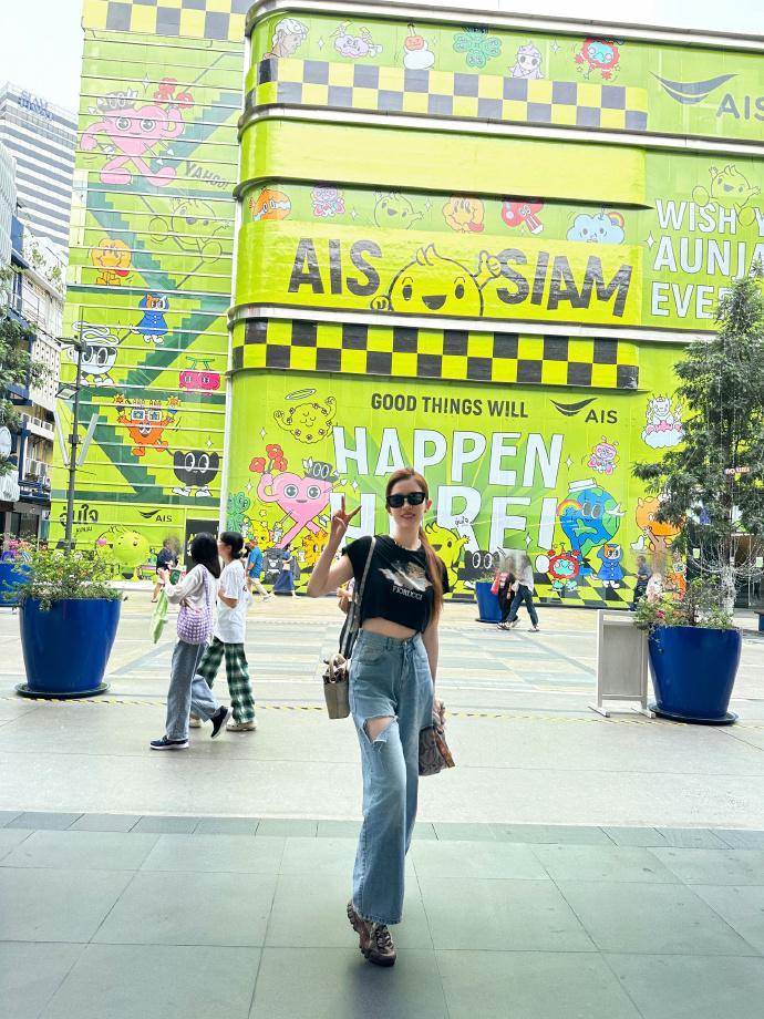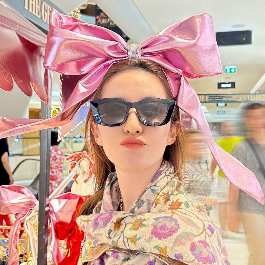 黑白水滴碎花上衣,搭配LV包包,頭髮一披,墨鏡一戴,伴著極具泰國元素的背景,還真是一波妥妥的旅游照。