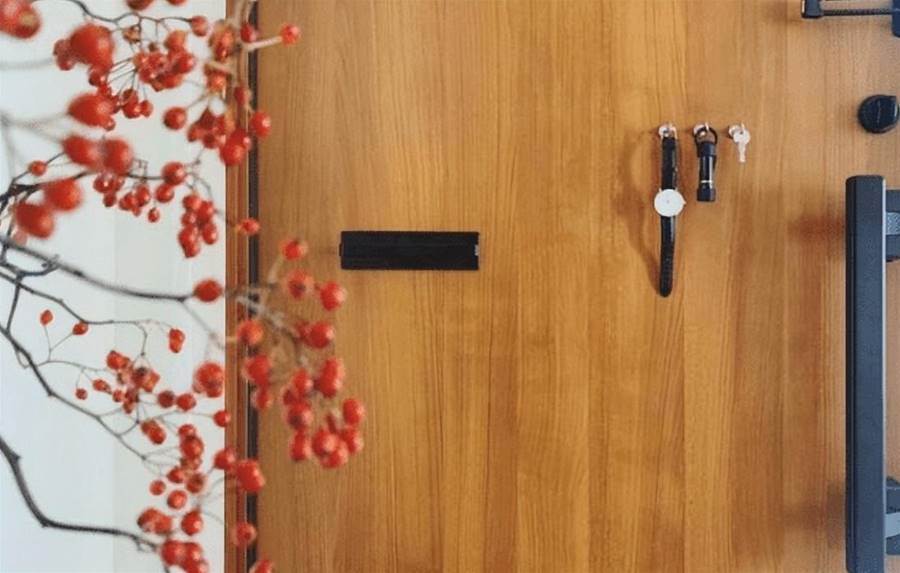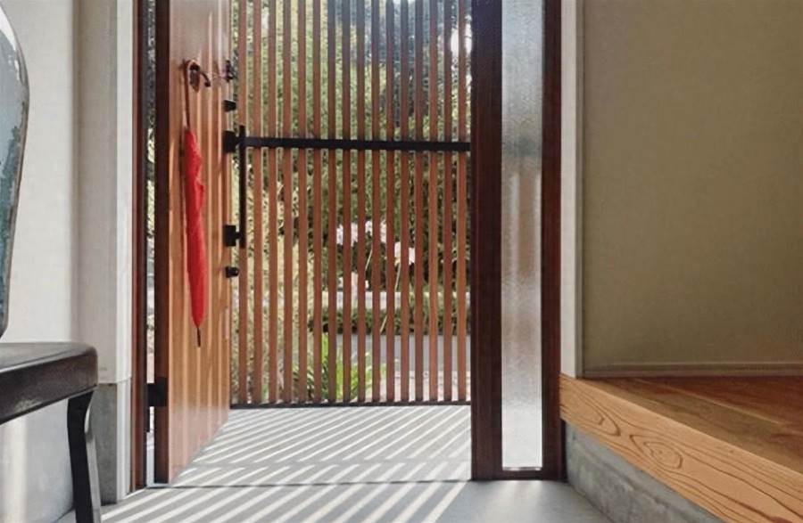 進門就是玄關設計,落塵區能使正廳跟換鞋處區分開來,看起來也是很有創意的設計。木門后貼幾個掛鉤,用來掛手表還有雨傘等小東西,相當的實用方便。