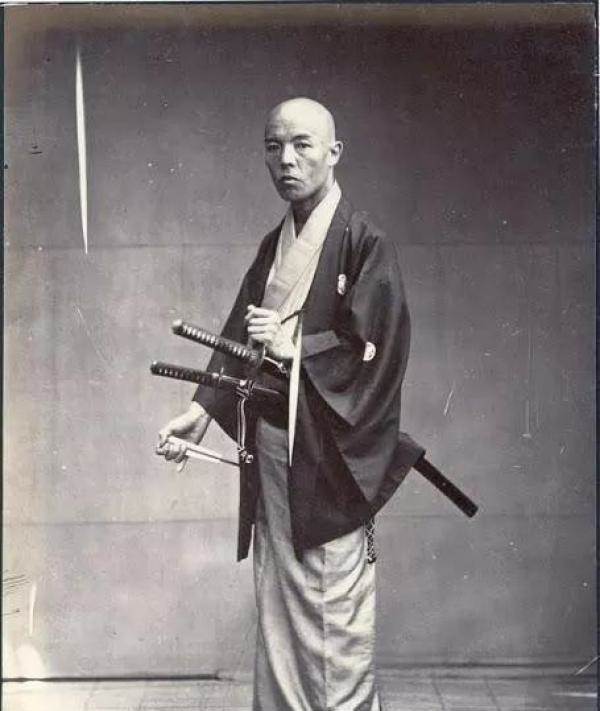 日本武士,從照片上來看,不是我黑他,真的不高,就比武士刀高那麼一點