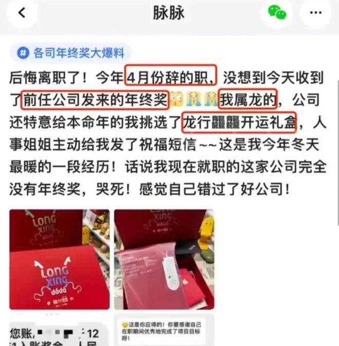 女子在網上發了一個貼文透露自己于2023年4月份辭職,但沒想到在12月既然還收到前公司的年終獎,并直言自己已經離職8個月,而且她現在就職的公司完全沒有年終獎,感覺自己錯過了好公司。