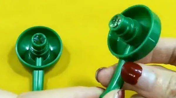 首先我們拿出家里用完的洗潔精瓶,把洗潔精瓶上的壓嘴取下來,最好是兩個形狀大小一樣的壓嘴,洗潔精用完了壓嘴不要扔。