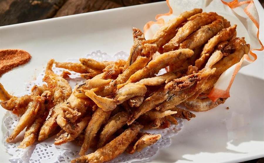 炸魚,除了帶魚之外,還有小魚,一口一個的那種,吃起來焦香酥脆,愛不釋手。