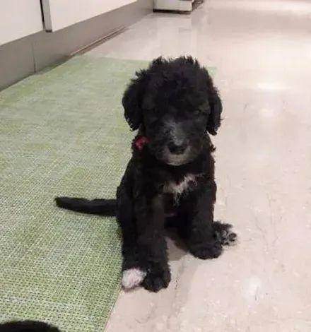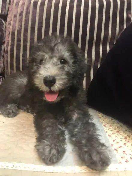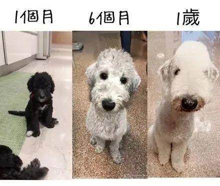 網友最初抱回家一只貝靈頓梗寶寶時,這貨長這個樣子,完全一個小黑汪...