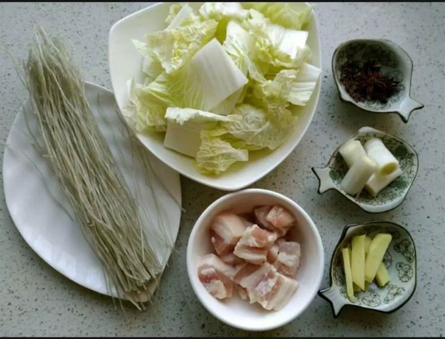 白菜豬肉燉粉條是一道常見的東北家常菜,
