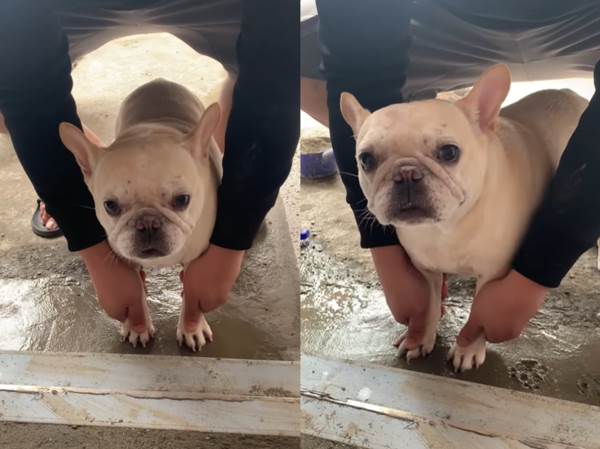 粉專「奶油法鬥-依比-依比利 I I」分享,家裡在裝修時法鬥「依比」不小心踩進未乾水泥,主人並沒有因此生氣,乾脆抱著依比在門前「畫押」,強制當家裡一輩子的寶貝。