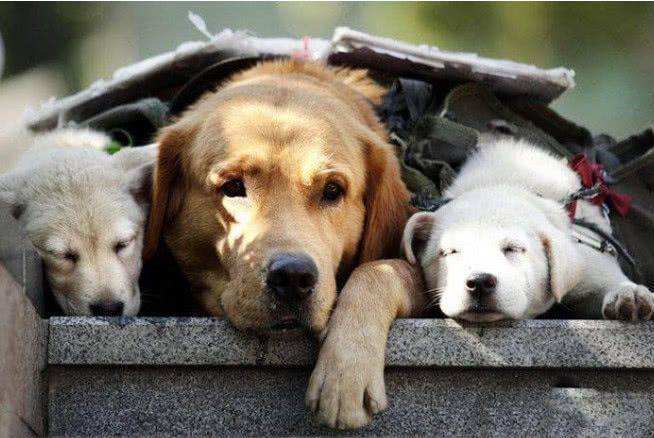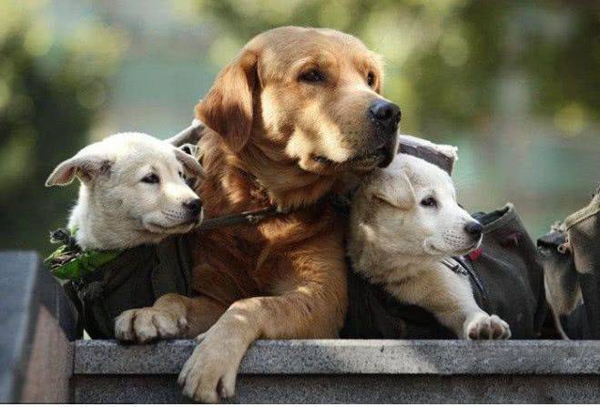 有這樣一只金毛狗狗,每天都會在市場看到它,身上還背著自己的寶寶,后面還跟著一只黑色的狗狗,像是在保護它,為什麼金毛每天都要背著自己的寶寶去市場上呢,人們都紛紛很好奇。