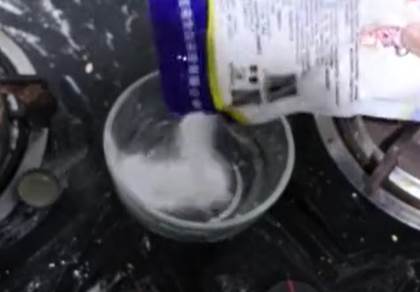 首先我們準備一個小碗,在里面加入一些小蘇打,
