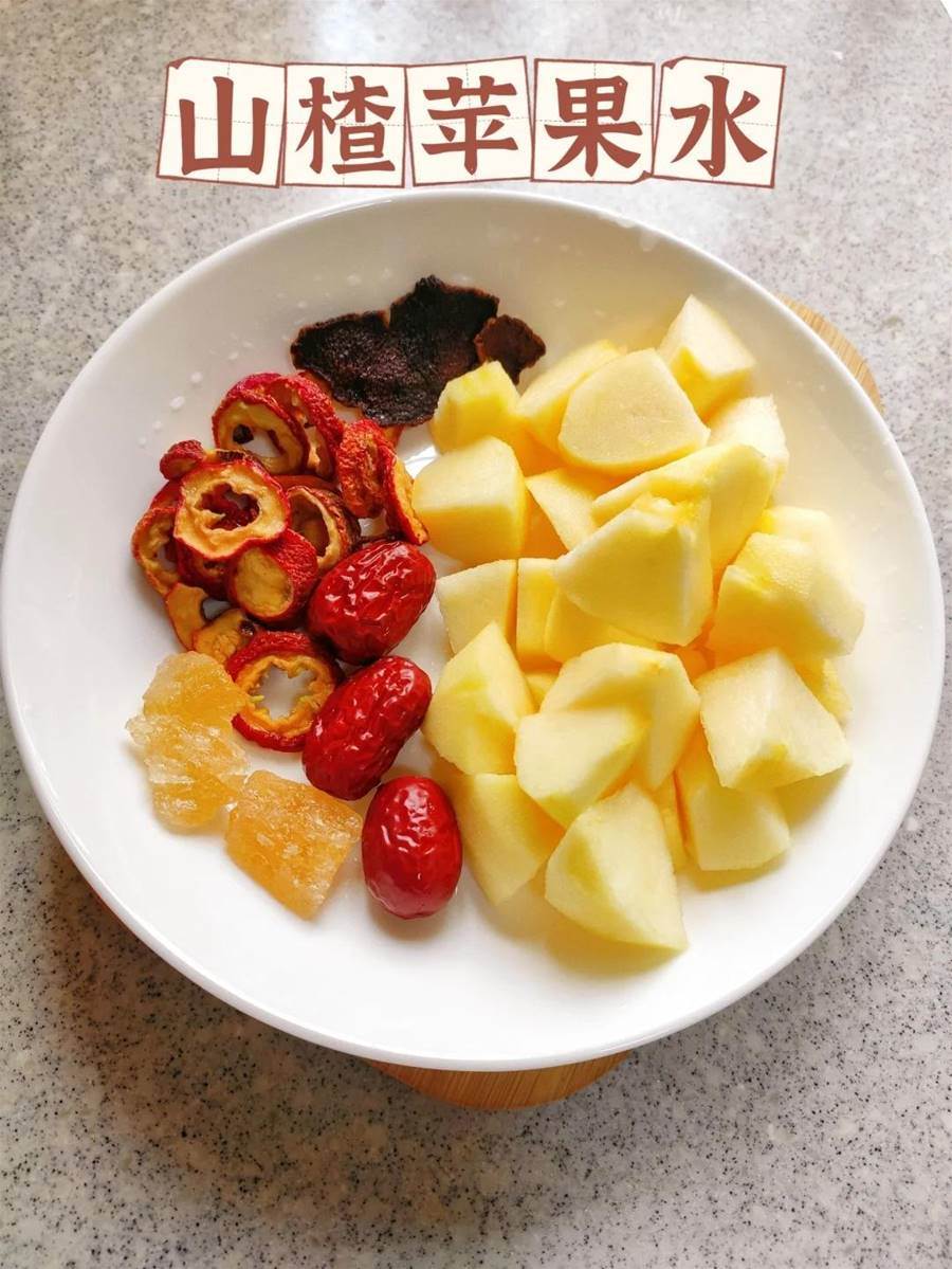 準備食材:蘋果1個,紅棗3個,山楂干四五片,陳皮一塊,適量冰糖