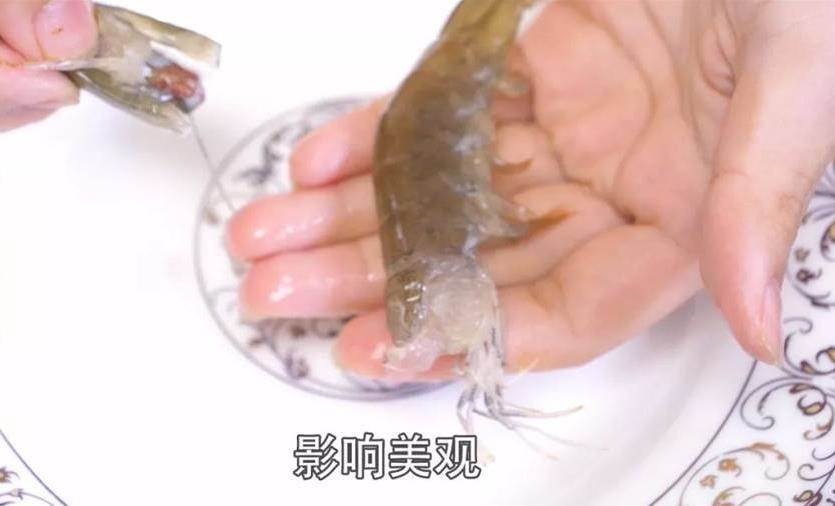 蝦線就是蝦的腸道,也是非常臟的,所以大家一定要去除,那麼這樣一只蝦就處理好了,這樣處理對蝦的外觀也不會有什麼影響