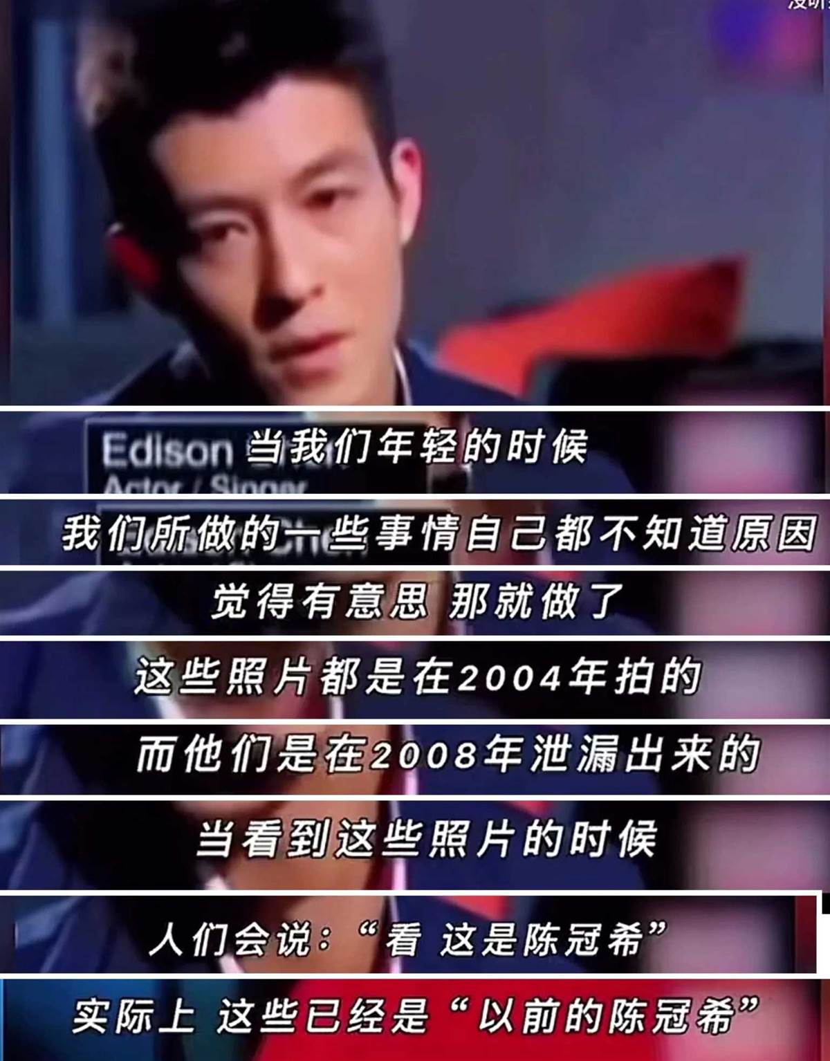 陳冠希在回答中提到:「當我們年輕的時候,所做的一些事情自己都不知道原因,覺得有意思那就做了。」他回憶起自己在2004年拍攝那些照片時的心態,那時的他年輕,心態無所顧忌。對他而言,拍照是源于一時的興趣,或許并沒有考慮后果。